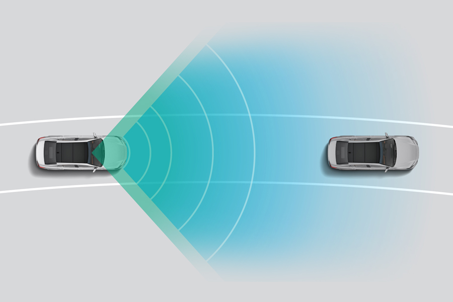 الرادار الديناميكي لنظام المحافظة على السرعة المضبوطة تلقائي (DRCC) يتم استخدام رادا ر بموجة ملليمترية وكاميرا أحادية العدس ة لرص د السيارة التي أمامك، مما يسمح لسيارتك بمتابعتها مع الحفاظ على مسافة تعتمد على سرعة السيارة .