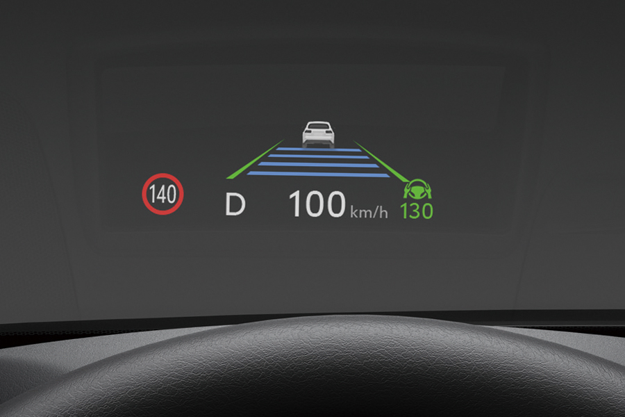 شاشة العرض العلوية (HUD) يتم عرض المعلومات المهمة للقيادة على الزجاج الأمامي ضمن مجال رؤية السائق .