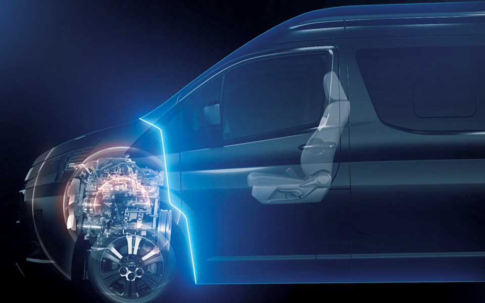 جسم آمن عند التصادم تم استخدام التصميم بنصف مقدّمة في الأمام، للعمل بشكل فعال على امتصاص طاقة الصدمة في حالة التصادم. ويسهِم ذلك في تحقيق مستوى ممتاز من الأمان عند التصادم.