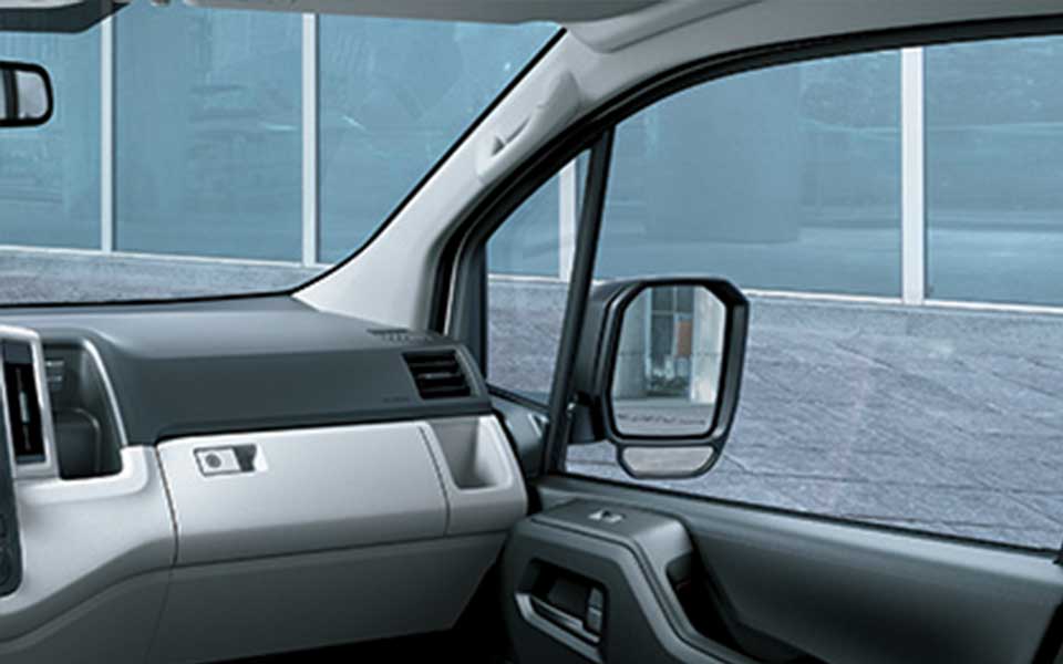 قابلية رؤية من أجل قيادة ممتازة تم خفض الجزء الأمامي من النافذة الجانبية الأمامية وتركيب زجاج ركني كبير للمساعدة على ضمان قابلية رؤية أمامية ممتازة. وأضيفت مرآة ثانوية، للتمكّن من التحقق في مجال الرؤية السفلي.