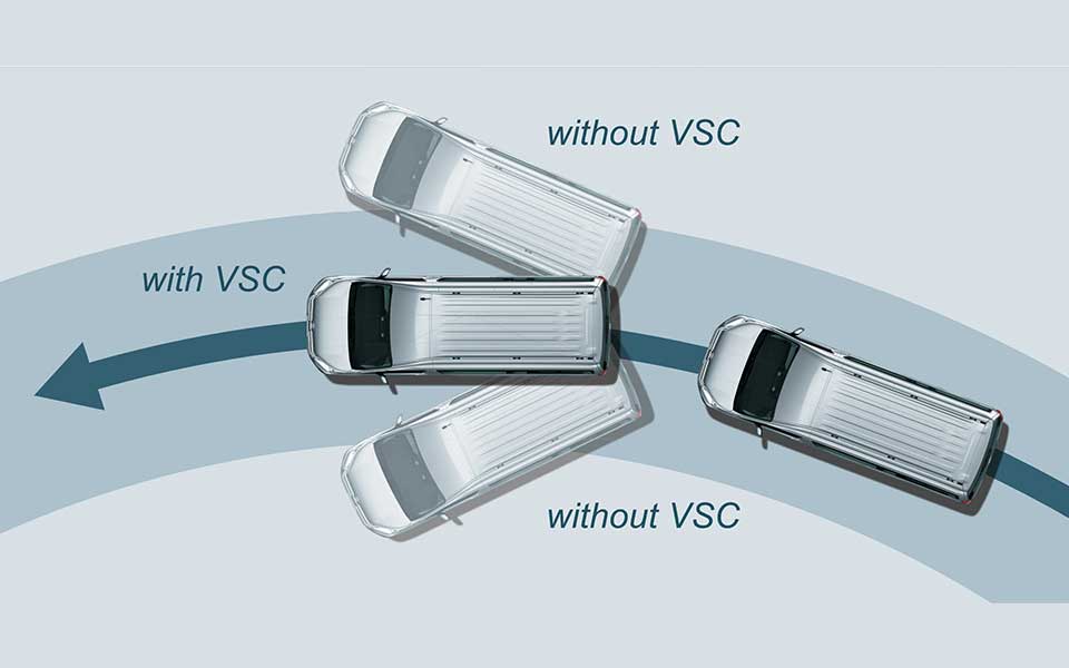 نظام التحكّم في استقرار المركبة يستخدِم نظام VSC المعلومات القادمة من المستشعرات لرصد حالات انجراف المركبة على سطح الطرق الزلقة، ويساعد على ضمان استقرار المركبة بتفعيل الفرامل انتقائيًا على عجلات بمفردها في الوقت الذي يتحكّم في قدرة قوة المحرّك