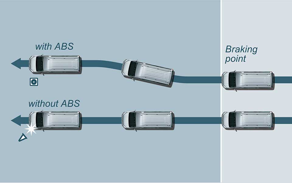 نظام الفرامل المقاومة للانغلاق مع توزيع قوة الفرامل إلكترونيًا إضافة إلى نظام ABS ، الذي يساعد على منع انقباض العجلات "امتناعها عن الدوران" أثناء الفرملة، يساعد استخدام نظام EBD على ضمان التوزيع المثالي لقوة الفرملة على العجلات اليمنى واليسرى