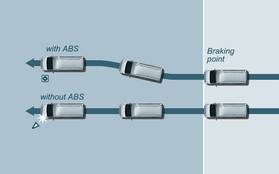نظام الفرامل المقاومة للانغلاق مع توزيع قوة الفرامل إلكتروني إضافة إلى نظام ABS ، الذي يساعد على منع انقباض العجلات )امتناعها عن الدوران( أثناء الفرملة، يساعد استخدام نظام على ضمان التوزيع المثالي لقوة الفرملة على العجلات اليمنى واليسرى.