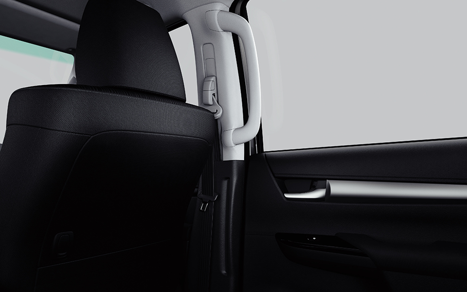مقابض المسك متمركزة في مكان مثالي تسهل عملية النزول والصعود من السيارة.