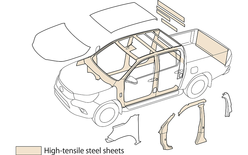 صفائح صلبة عالية الشد تمنح صلابة للهيكل خفيف الوزن. التعديلات المدخلة على الهيكل والتي تتضمن الاستخدام الكثيف للتلحيم النقطي، تزود السيارة بالمزيد من الصلابة.