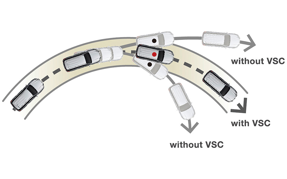 نظام التحكم بالتوازن (VSC) دوران آمن عند المنعطفات بفضل خاصية التحكم التلقائي في قدرة خرج المحرك وقوة الفرملة على كل إطار لتتمتع بمزيد من السيطرة.