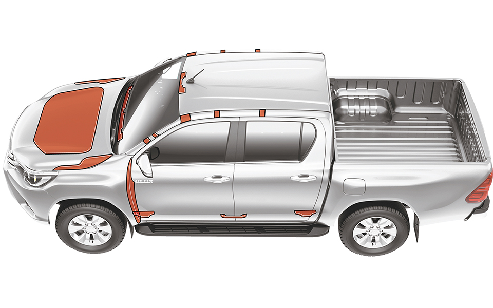 مواد امتصاص وعزل الصوت والاهتزاز يسهم موضع هذه المواد الاستراتيجي، الموجودة في أرضية السيارة وحجرة المحرك، في توفير رحلة هادئة.